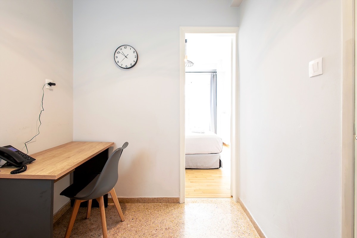 The spaceSet in a modern seven-story complex, our building houses 12 exclusive apartments, each crafted for comfort and convenience. Your 5th-floor haven includes a well-appointed kitchen, a cozy living room, a dedicated office space, two elegant bathrooms, ample storage, two serene bedrooms for restful nights, and a quaint balcony for quiet moments. Designed with both short visits and extended stays in mind, this apartment cater to your every need. With our office conveniently located next to your apartment, we ensure seamless 24-hour support, making your Athens experience as enjoyable and carefree as possible.